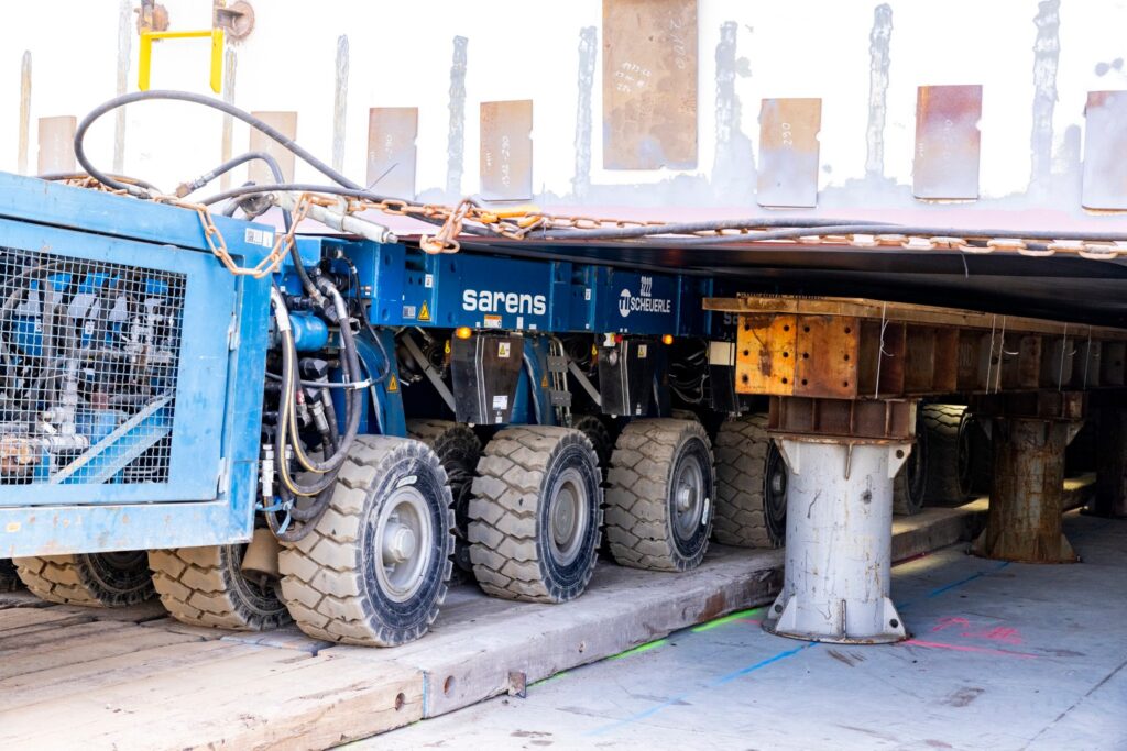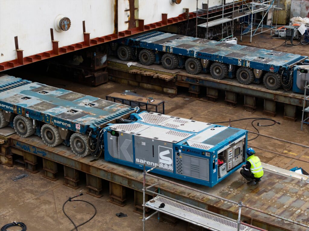 Operacja wymagała zastosowania specjalistycznego sprzętu. Do przemieszczenia konstrukcji wykorzystano samobieżne transportery modułowe SPMT oraz półzanurzalne barki BOABARGE 35, które umożliwiają precyzyjne manewrowanie ciężkimi ładunkami na nabrzeżu. Następnie moduł został nasunięty na pokład pontonu o dużej nośności .Po odholowaniu na odpowiednią głębokość przeprowadzono kontrolowane zanurzenie jednostki, co pozwoliło konstrukcji uzyskać pływalność.