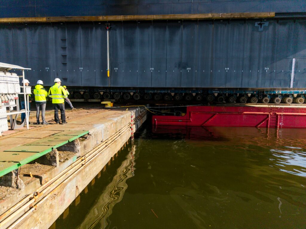 Zwodowany element to potężna konstrukcja o długości 84 metrów, szerokości 48 metrów i wysokości 19 metrów. Masa modułu wynosi około 3,5 tysiąca ton. To jeden z kluczowych fragmentów budowanego doku, który docelowo ma osiągnąć długość około 240 metrów.